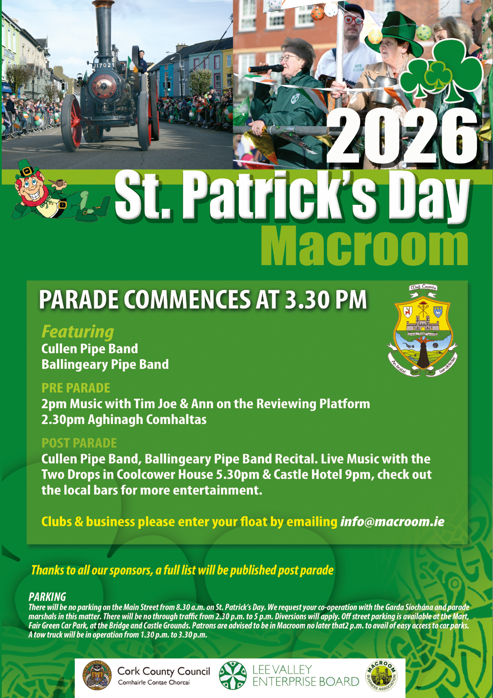 St. Patricks Day 2026 11 Mar Written By Alan Taylor Don’t miss the 2026 St Patricks Day Parade in Macroom Town at 3:30 pm! Alan Taylor